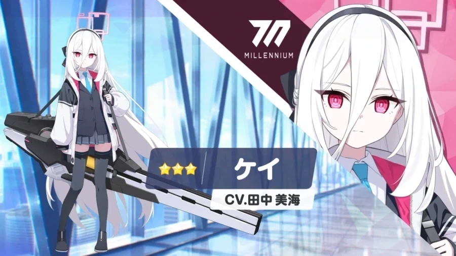 케이는 신비복합 스트라이커 서포터로 범위내 아군에게 공중 + 신비특효를 제공합니다 무려 신비버전 수시노라는 무시무시한 수식이 붙었을정도로.. 네.. 코스트가 2밖에 안되지만 지속시간이 씹사기고 사용위치를 따로 지정할수있으며 범위가 넓어서 괜찮은 캐릭터라고 평가받고 있습니다. 복합장갑이기 때문에 그동안 특장 학생을 쓰기 어려웠던 호크마,페로로지라 총력전에서 활약이 기대됩니다.